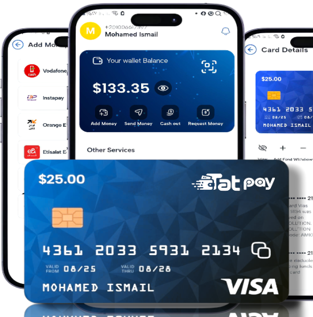 قم بإيداع الأموال في حساب TatPay الخاص بك بسرعة وأمان بالعديد من العملات مثل الدولار والجنيه المصري واليورو.
